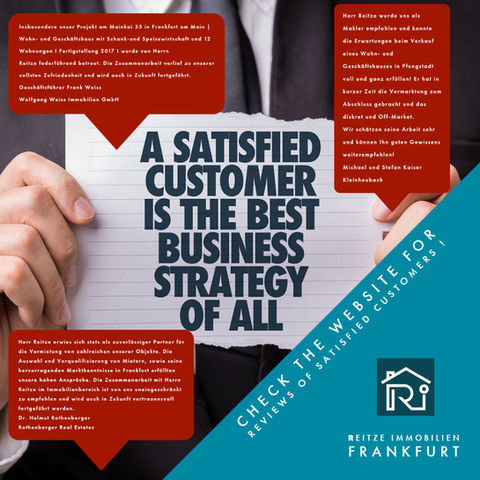 Der Verkauf einer Immobilie erfordert Zeit, Wissen und einen Verhandlungsexperten. Als professioneller und erfahrener Immobilienmakler in Frankfurt, begleite ich Sie während des gesamten Verkaufsprozesses, von den ersten Schritten bis zum Abschluss und darüber hinaus. Setzen Sie sich mit Reitze Immobilien in Verbindung, um mit dem Verkauf Ihrer Immobilie zu beginnen.